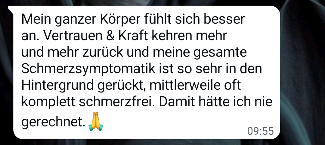 die nach ein paar klaren Impulsen zum ersten Mal seit Monaten schmerzfreie Tage haben.